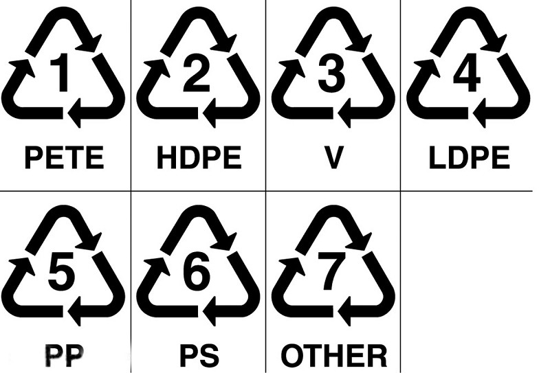 一般塑膠可分為六種,大部份外地生產的塑膠產品都會在底部印有一個三角形的循環再造標誌,內印有1至6其中一個數字,代表該種塑膠的種類。