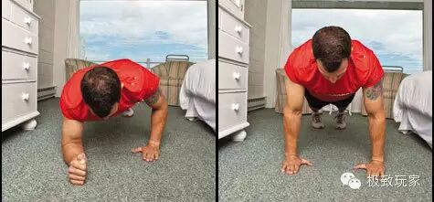手支撐姿勢(雙腿沒有併攏,動作對腹部的刺激會降低。)在肘支撐平板的基礎上,雙手撐地。同樣,雙手在雙肩的落點上。