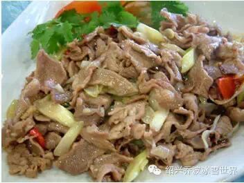 ( 1 )先把肉切成二分厚的片,再改切二分五寬、八分長的斜段,用紹酒、精鹽餵一會兒,再用澱粉加香油調糊漿好。