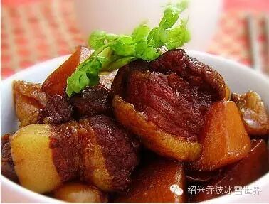 2 、用水放入冰糖開鑊,加入豉油煮成糖膠,放入切好脯肉、酒、鹽拌勻,然後加入川椒八角、南乳,慢火燜熟;