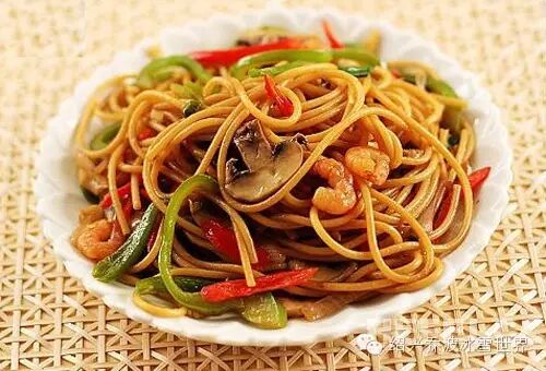 4 、把燙過綠豆芽的水燒開後放入麵條煮熟,然後撈出麵條浸入冷開水後撈起盛入碗內
