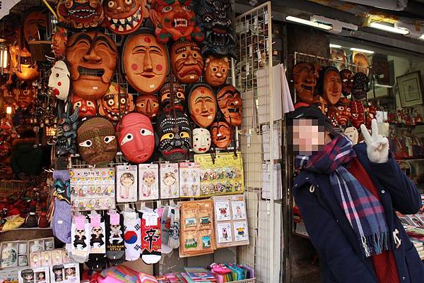 如果你對傳統手工藝品抱有高度興趣,一定要到仁寺洞的這條街逛逛,店面牆上掛有各式各樣的面具